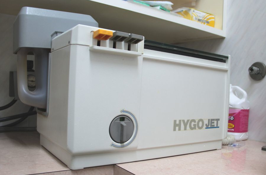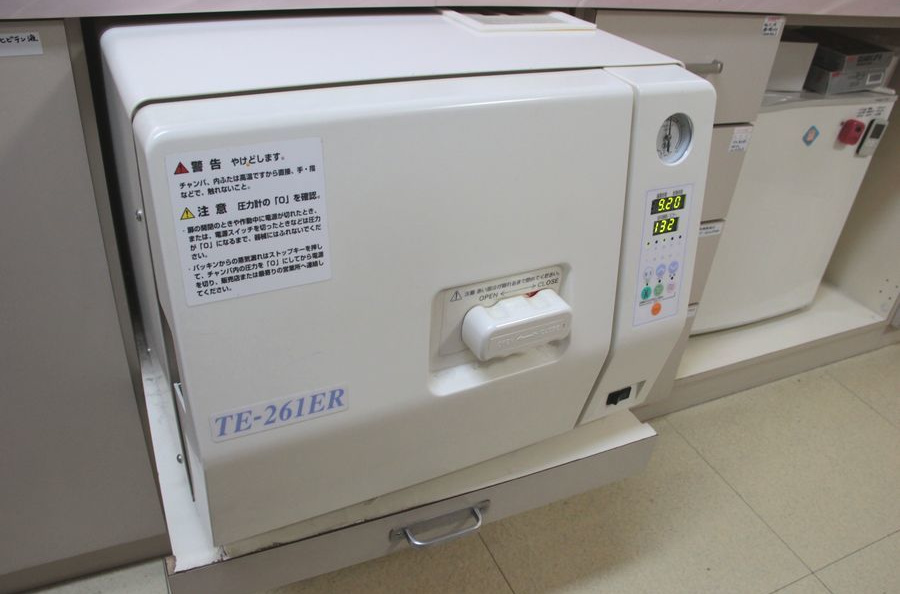 歯の型どりをしたものをステリハイドで自動的に滅菌します。